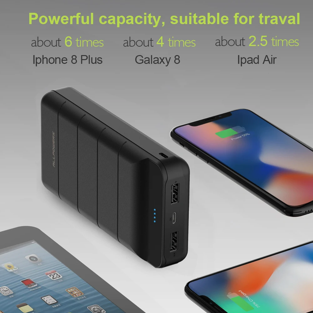 ALLPOWERS 30000mAh Power Bank High Capacity Triple USB Output Quick Charging for iPhone 6 6s 7 8 8s Samsung Galaxy s6 s7 s8 HTC :Click Here