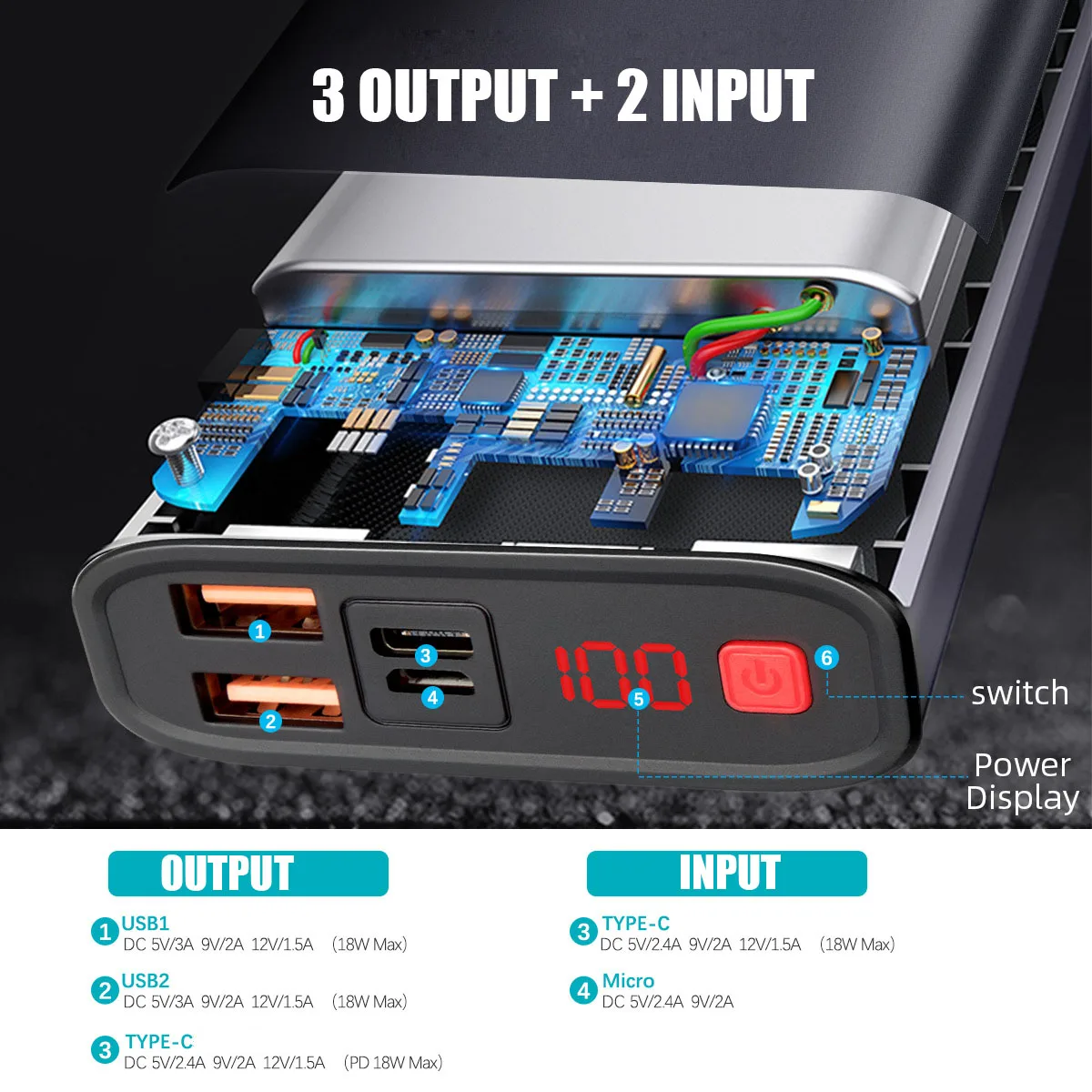 Post a Comment for "Big Sale PD Fast Charging Power Bank Portable Charger Battery for Xiaomi Iphone QC3.0 Powerbank Mobile Batte "