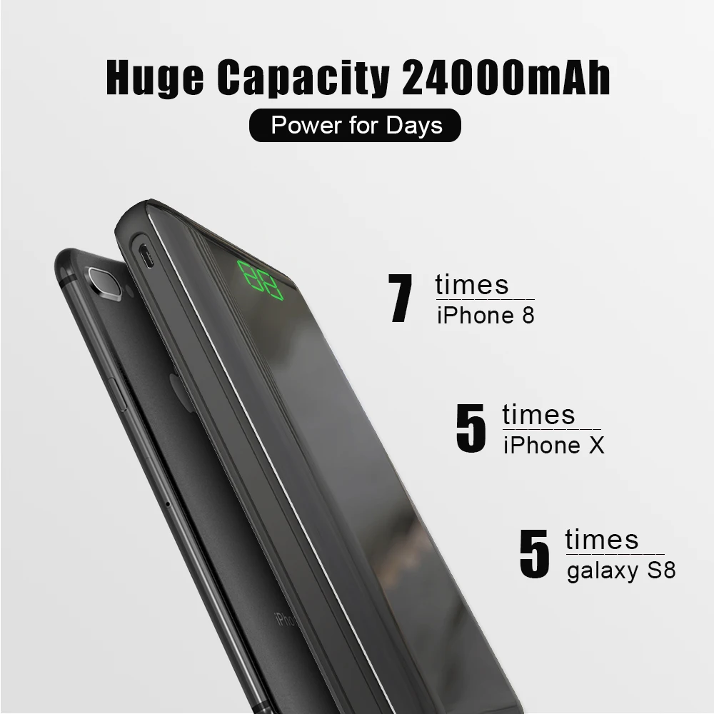 Goods Power Bank 24000mAh Portable Charger Fast Type-C Charger with 2 Input & Output LCD Display with Mir