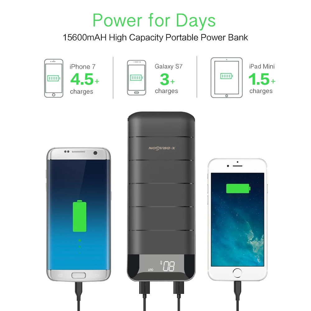X-DRAGON Power Bank 15600mAh Dual USB LCD External Battery Phone Charger for Smartphones iphone Xiaomi :Click Here