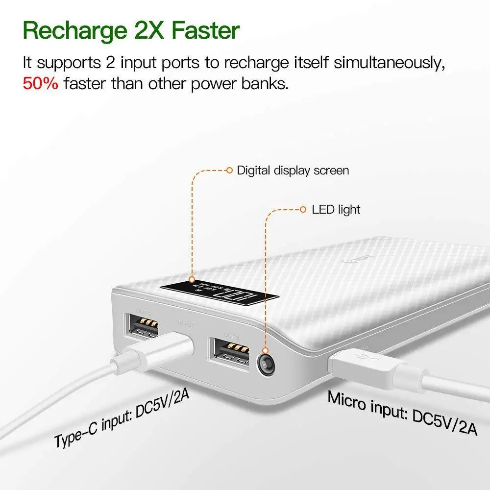 10000mAh Power Bank 2.1A with Cable External Battery forSamsungMI USB Type C with Charging Cable Powerbank :Click Here