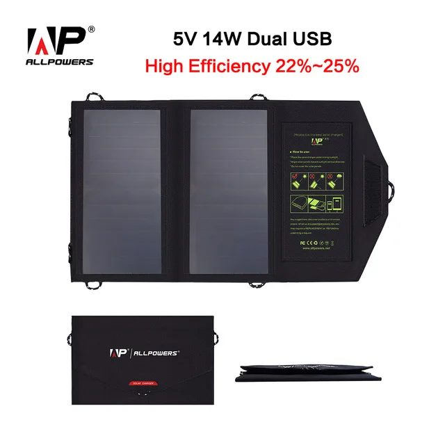 Buy Online AllPOWERS 5V 14W SunPower Solar Panel High Efficiency Solar Cell Dual USB Portable Foldable Solar P