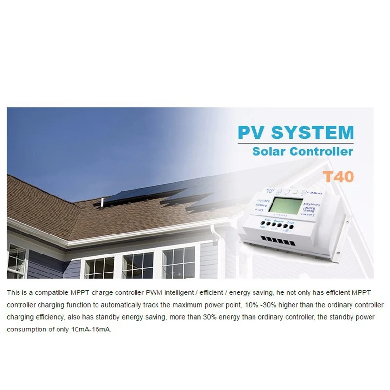 New Product MPPT T40 40A Solar Charge Regulator 12V 24V Auto LCD Display Controller with Load Dual Timer Contro