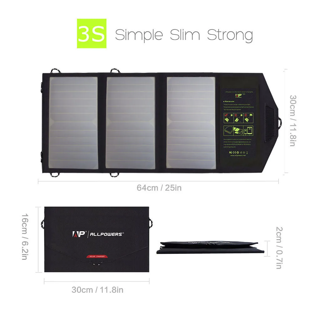 ALLPOWERS 21W Mobile Phone Charger Dual USB 5V 4A Solar Panel ETFE Solar Charger for Smartphones :Click Here