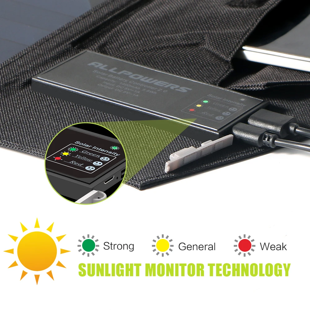 ALLPOWERS Solar Charger 5V 21W Built-in 6000mAh Battery Portable Solar Cells for iPhone 5 6 6s 7 8 X iPad Samsung Xiaomi Huawei :Click Here