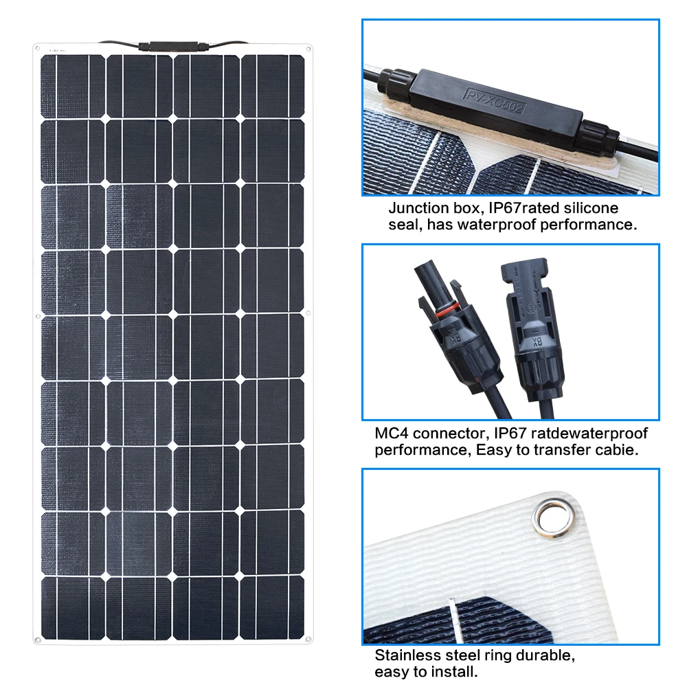 Solar Panel 300W 3pcs of 100w Flexible Solar Panel Monocrystalline Solar Cell 12v Solar Charger for boat with low price 200w400w :Click Here