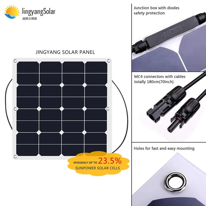Jingyang 18V Waterproof Adhesive Thin Film 100W ETFE Flexible Solar Panel China Monocrystalline Solar Cell for Car RV boat :Click Here