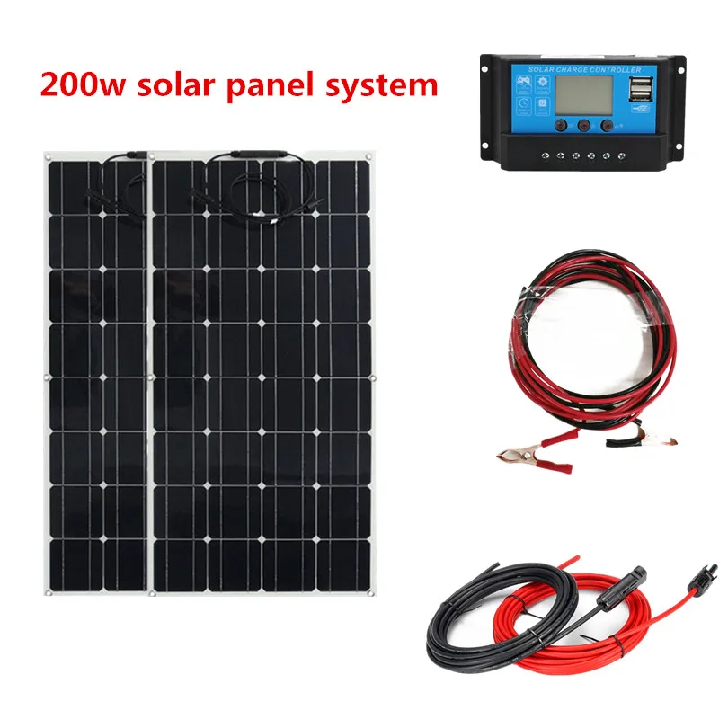 200W equal 2pcs 100W solar panel Monocrystalline Solar Cell for home Car/Yacht/Steamship 12V 24 Volt Solar Battery charger :Click Here