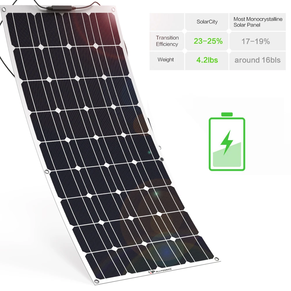 Latest Product ALLPOWERS 100W 18V 12V Flexible Solar Panel for Motorhome Boats Roof Battery Charger for RV Boat Ca