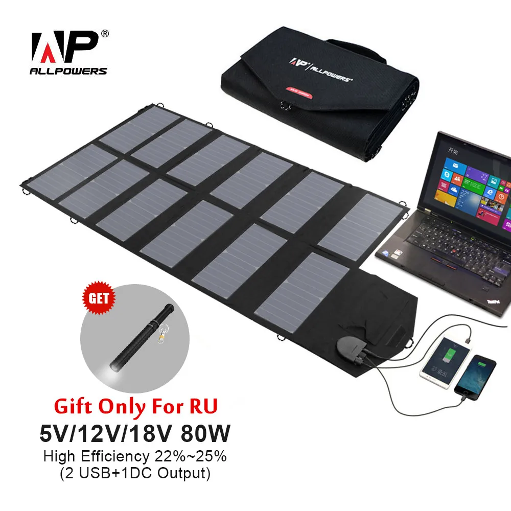 ALLPOWERS Portable Solar Panel Charger 100W 18V 12V Foldable Solar Panel Solar Battery Charger for iPhone Laptop Cellphones :Click Here