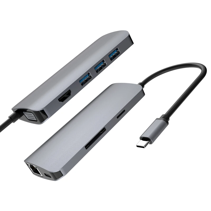 The Latest 9 in 1 Type-C Hub To Hdmi Usb 3.0 Sd Tf Pd Rj45 Vga Ethernet Lan Card Reader Adapter